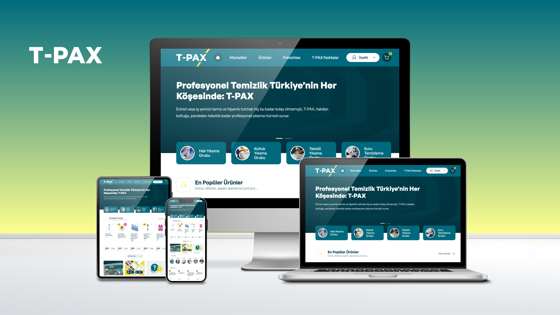 T-PAX, temizlik sektörünün geleceğini şekillendiren yeni nesil zincir yapıdır. 25 yıllık sektör tecrübesi, 50 üretici desteği, 10 yıllık E-Halı Servisi deneyimi, özel kimyasalları ve akademik eğitim altyapısıyla güçlenmiştir. Yapay zekâ destekli makineleri, barkodlu sistemleri ve şeffaf hizmet anlayışıyla sektörün tüm süreçlerini yeniden tanımlar.